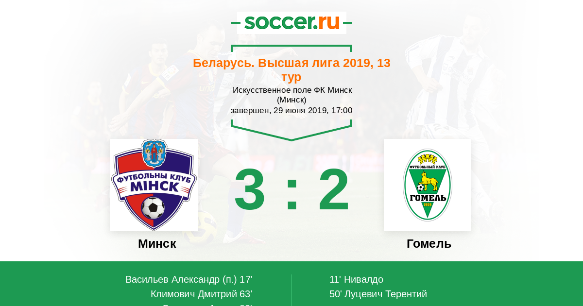 Протокол матча Минск против Гомель