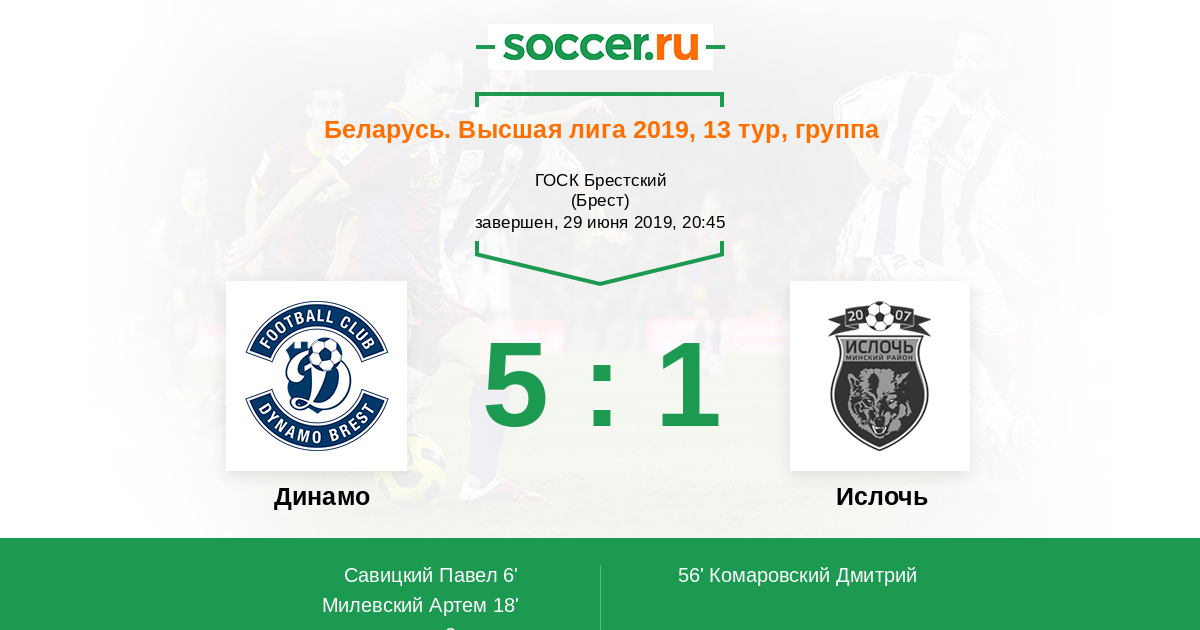 Протокол матча Динамо против Ислочь