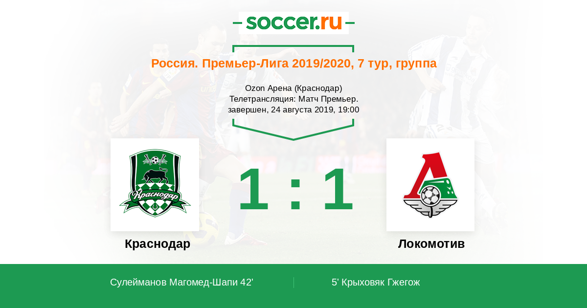 Протокол матча Краснодар против Локомотив