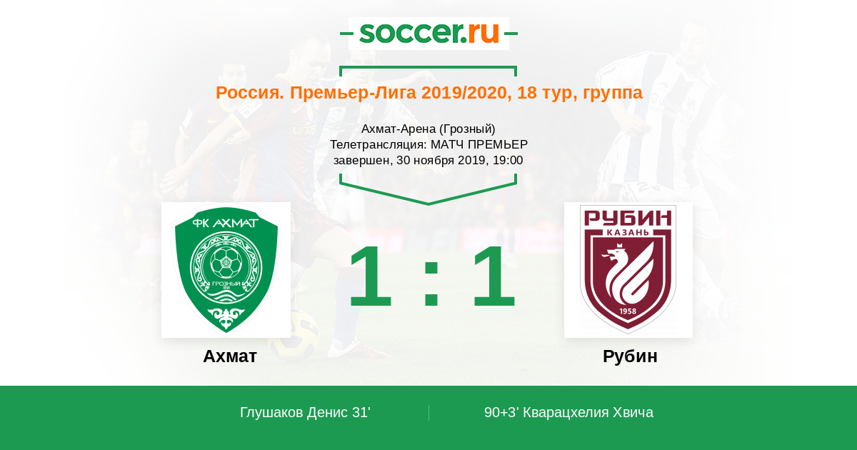 Протокол матча Ахмат против Рубин