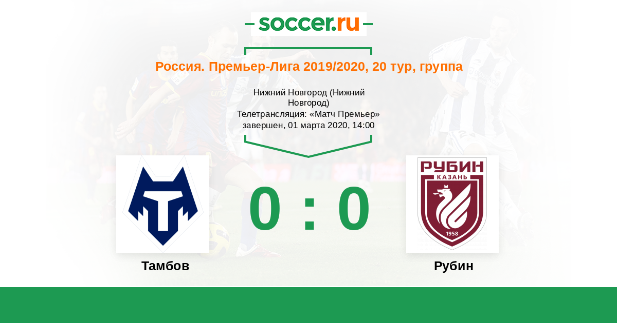 Протокол матча Тамбов против Рубин