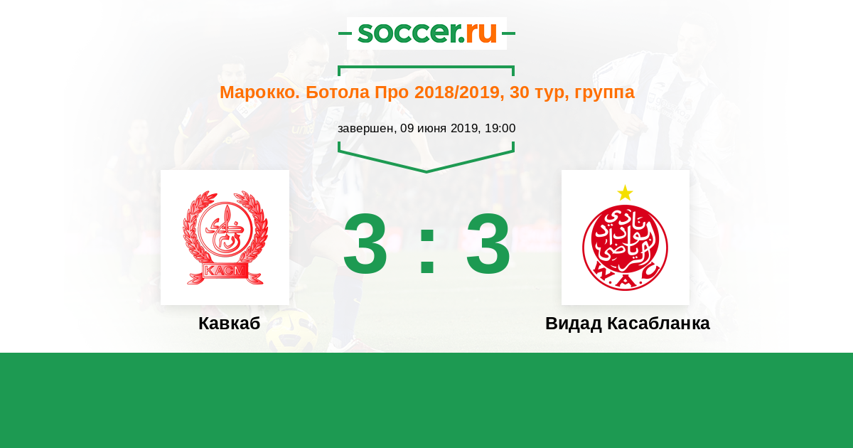Марокко. Ботола Про 21.04.2018 Видад Касабланка Логотип футбольный клуб Видад Касабланка 4:1 Логотип футбольный клуб Кавкаб (Марракеш) Кавкаб