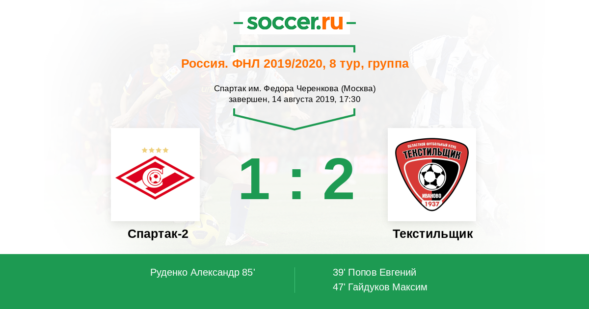 Протокол матча Спартак-2 против Текстильщик