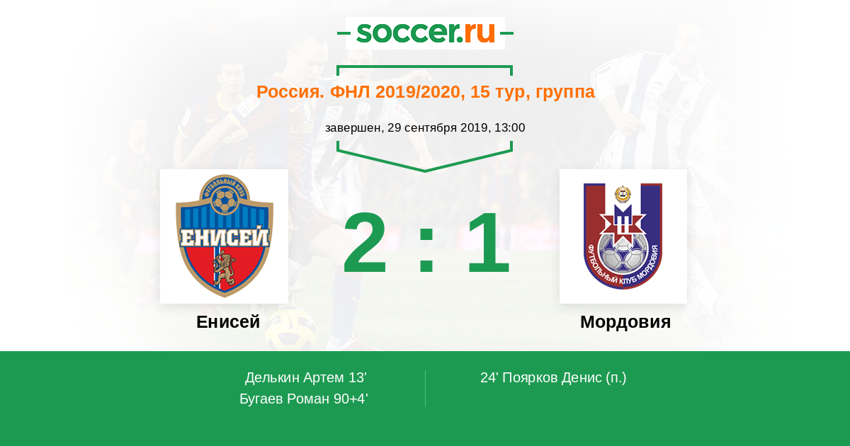 Протокол матча Енисей против Мордовия