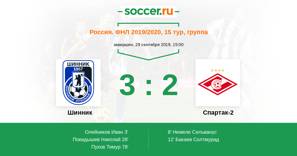 Протокол матча Шинник против Спартак-2