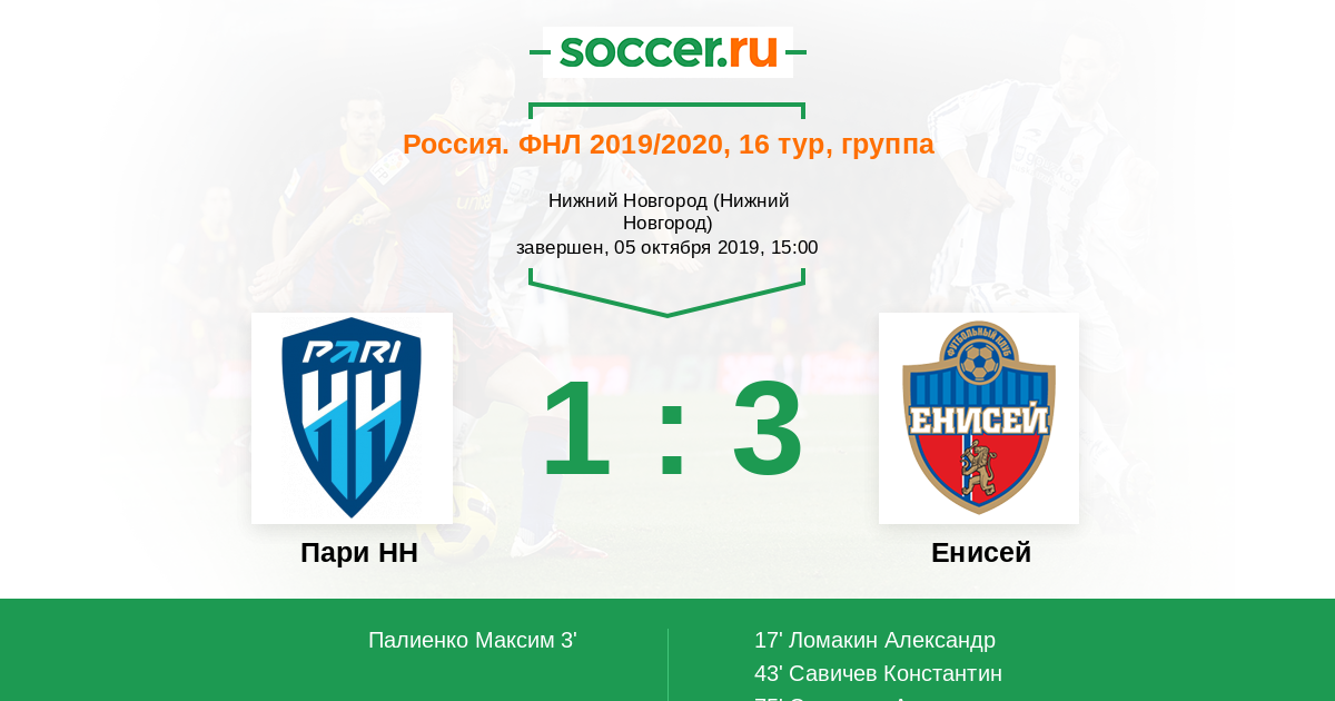 Протокол матча Пари НН против Енисей