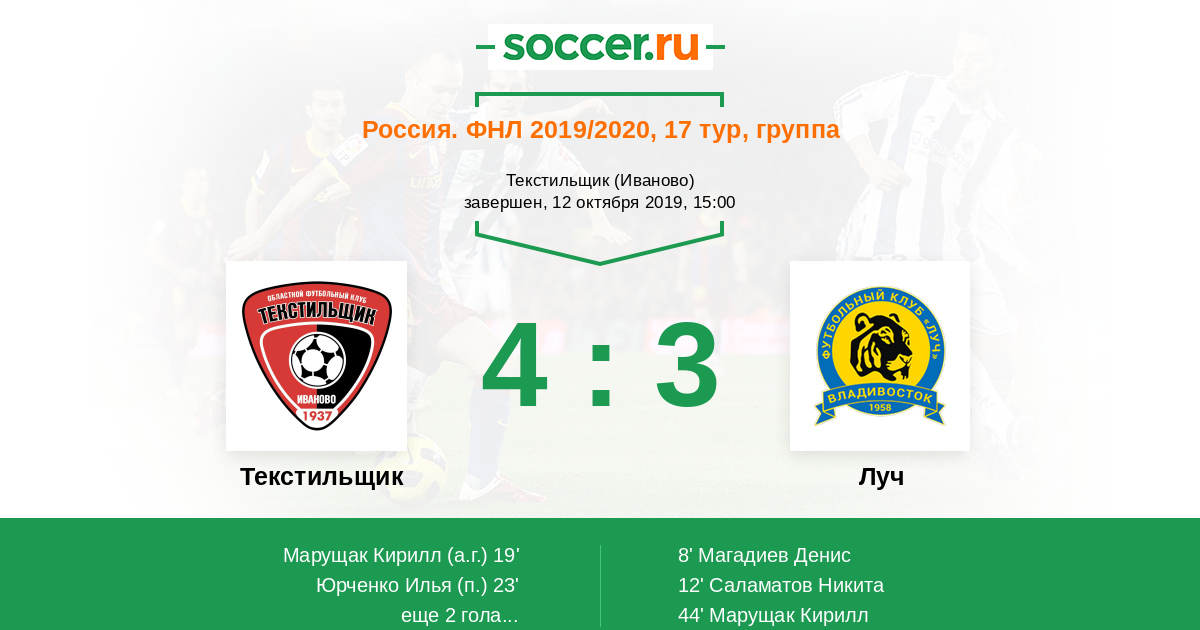 Протокол матча Текстильщик против Луч