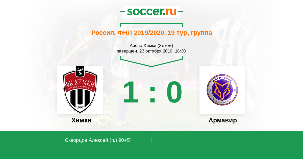 Протокол матча Химки против Армавир