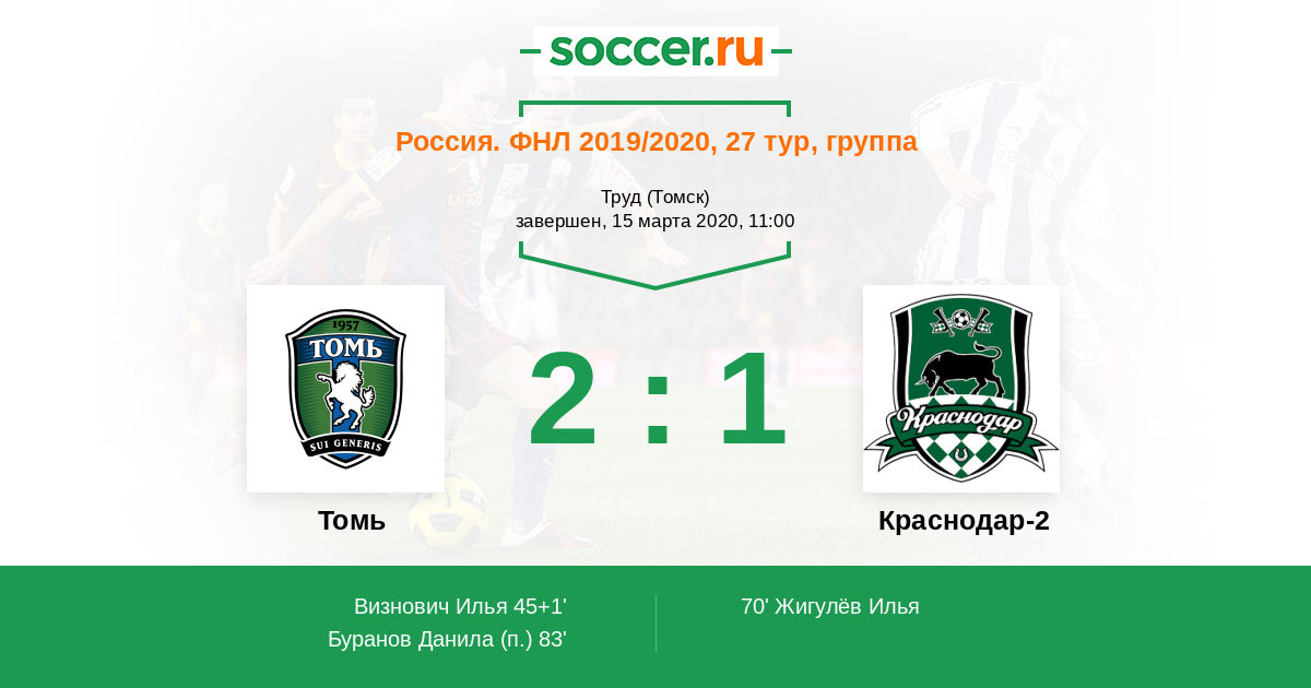 Протокол матча Томь против Краснодар-2