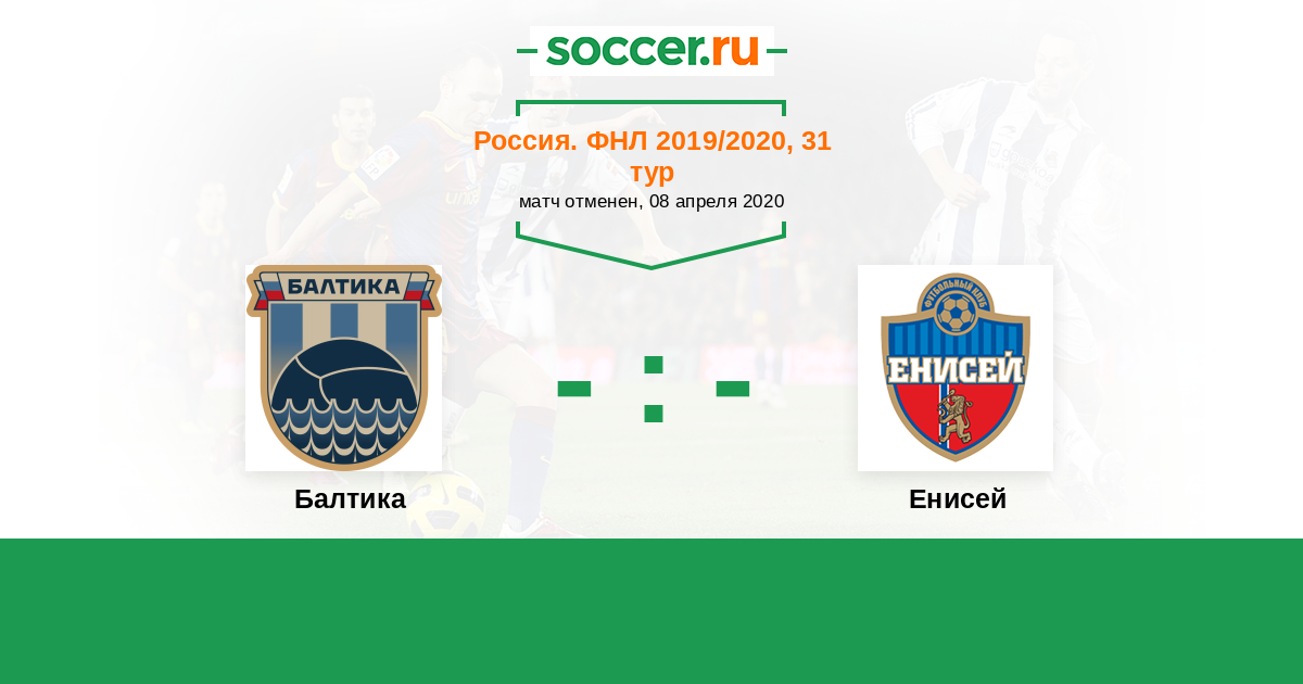 Россия. Первая лига 14.09.2019 Енисей Логотип футбольный клуб Енисей (Красноярск) 2:2 Логотип футбольный клуб Балтика (Калининград) Балтика