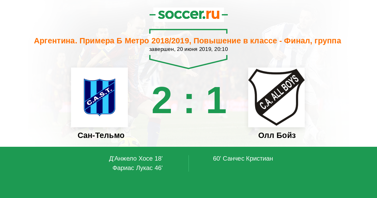 Протокол матча Сан-Тельмо против Олл Бойз