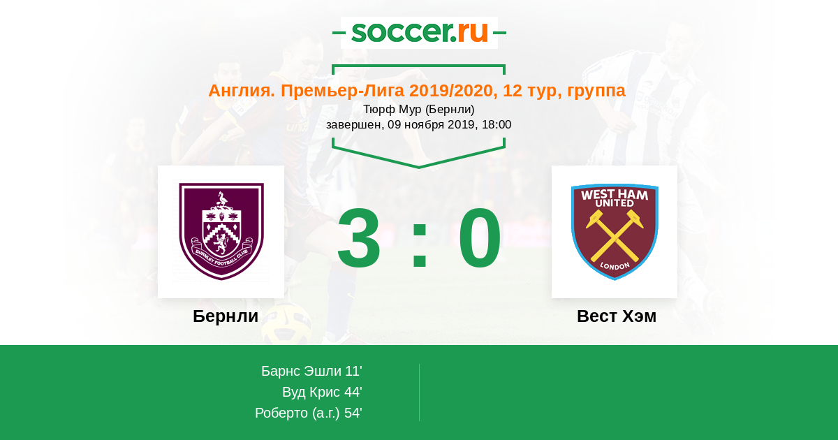 Протокол матча Бернли против Вест Хэм