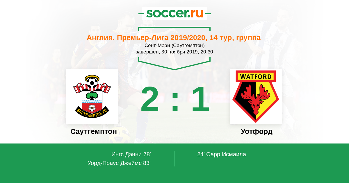 Протокол матча Саутгемптон против Уотфорд