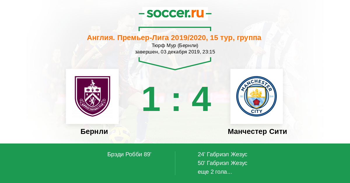 Протокол матча Бернли против Манчестер Сити