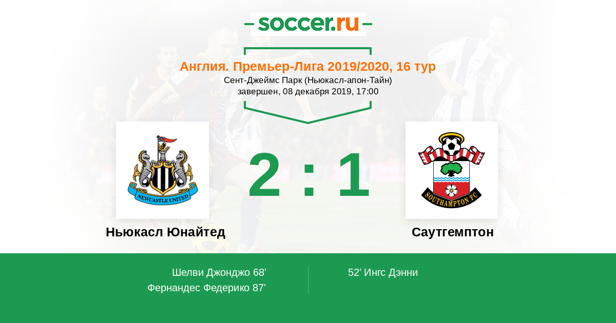 Протокол матча Ньюкасл Юнайтед против Саутгемптон