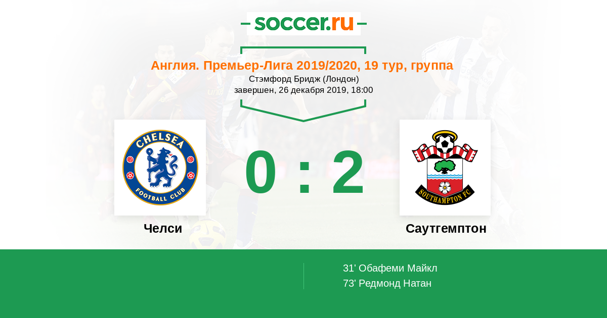 Очные противостояния Челси – Саутгемптон.