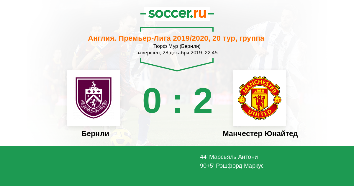 Протокол матча Бернли против Манчестер Юнайтед