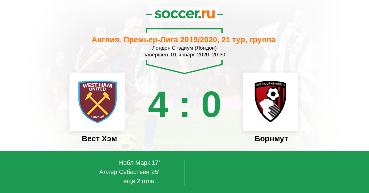 Протокол матча Вест Хэм против Борнмут