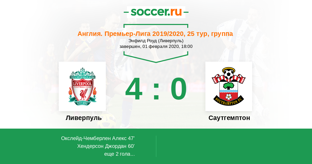 47' (1:0) Окслейд-Чемберлен Алекс (15) (Фирмино Роберто (9))
