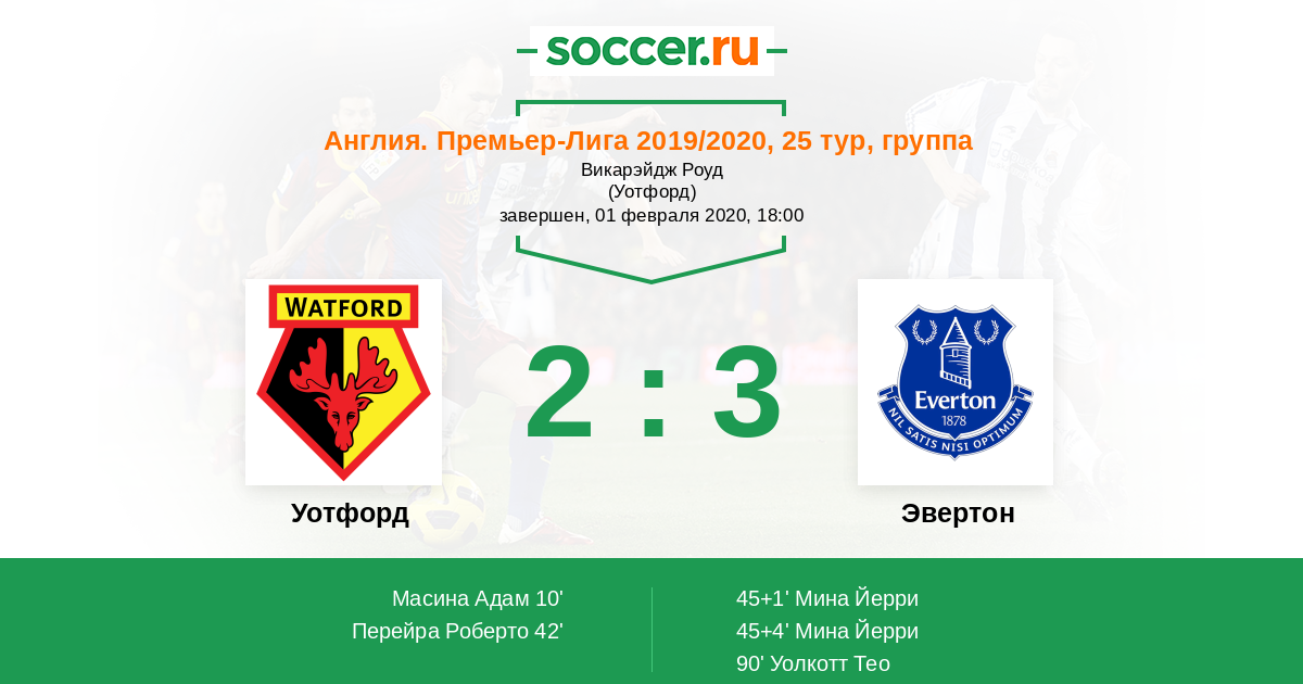 Протокол матча Уотфорд против Эвертон