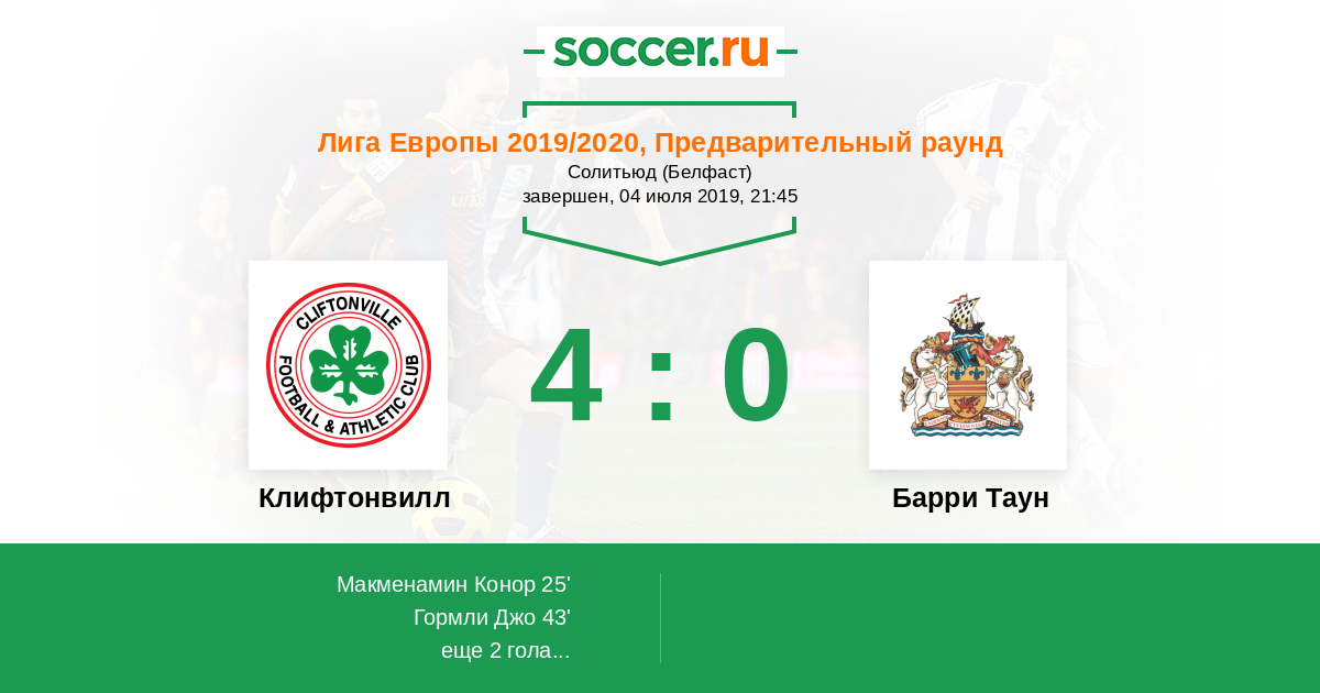 Протокол матча Клифтонвилл против Барри Таун