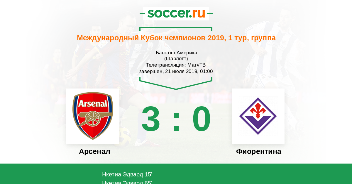 Протокол матча Арсенал против Фиорентина