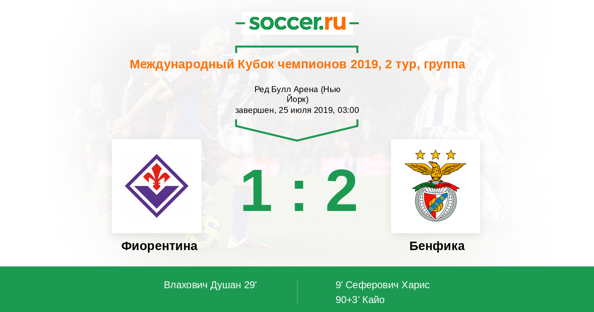 Протокол матча Фиорентина против Бенфика