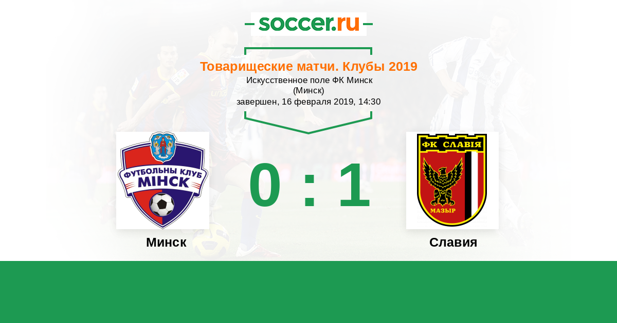 Беларусь. Высшая лига 16.09.2016 Минск Логотип футбольный клуб Минск 6:2 Логотип футбольный клуб Славия (Мозырь) Славия