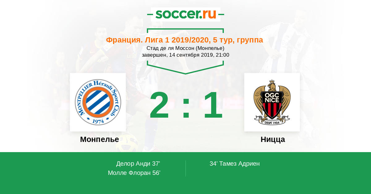 Протокол матча Монпелье против Ницца