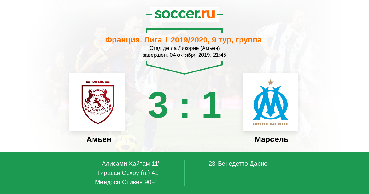 Протокол матча Амьен против Марсель