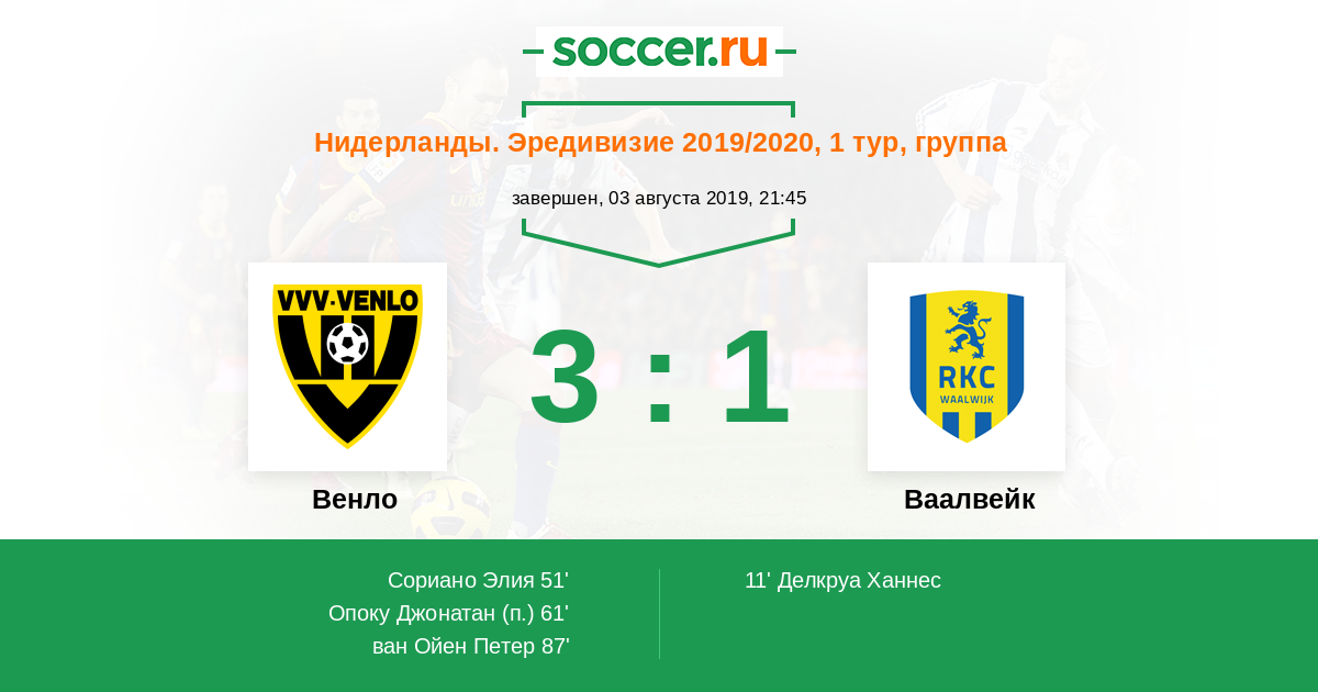 Протокол матча Венло против Ваалвейк