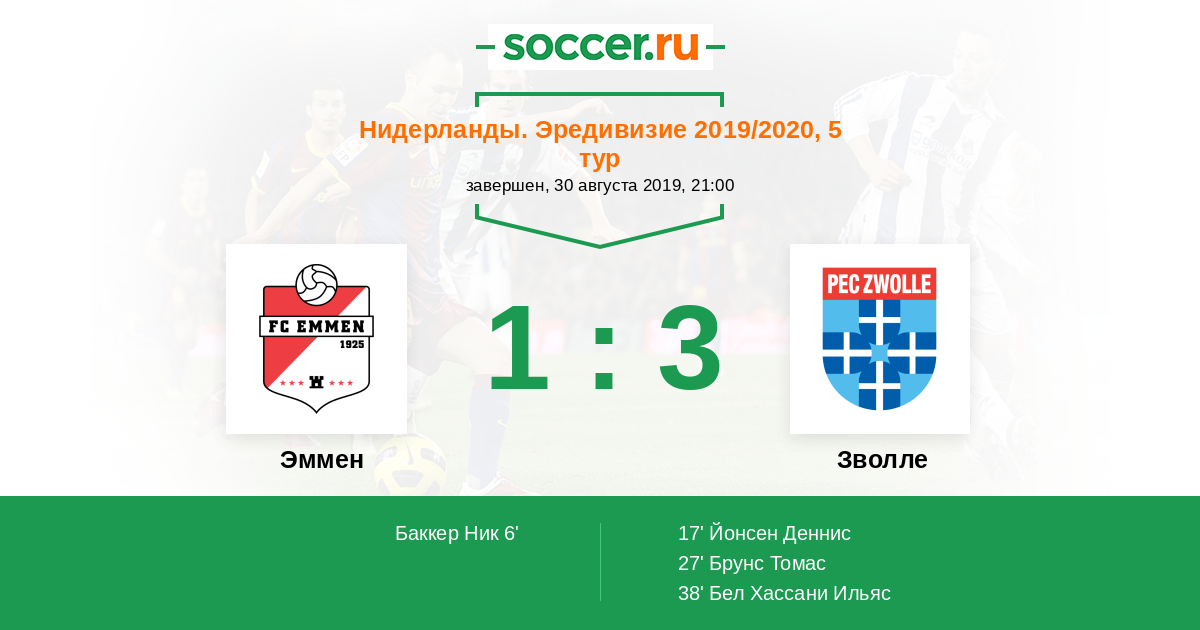 6' (1:0) Баккер Ник (4) (Лаурсен Николай (11))