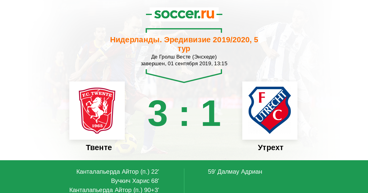 Протокол матча Твенте против Утрехт