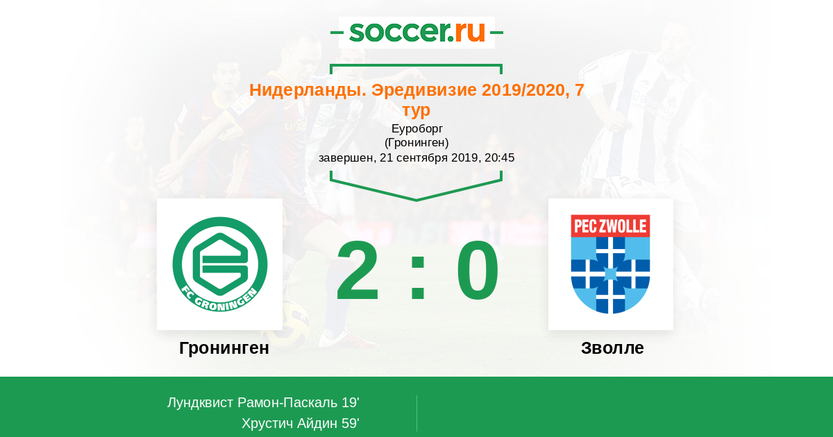 Протокол матча Гронинген против Зволле
