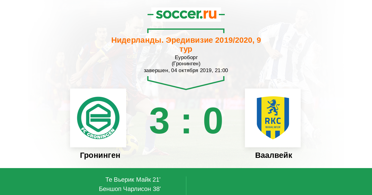 Протокол матча Гронинген против Ваалвейк
