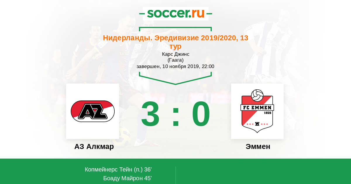 Протокол матча АЗ Алкмар против Эммен