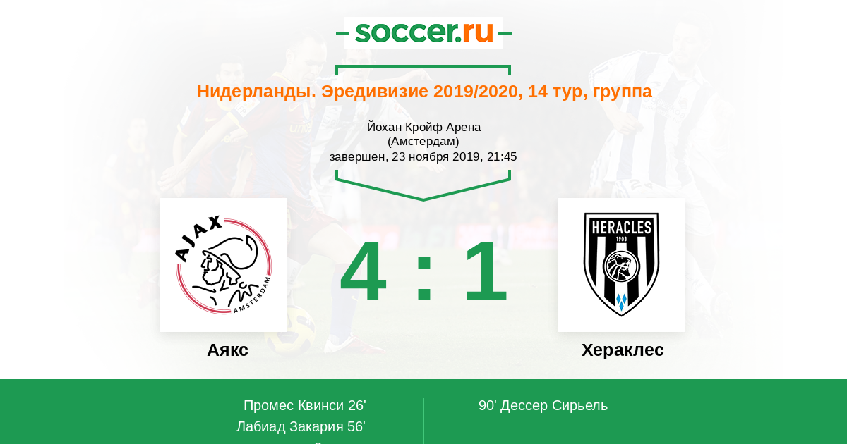 Протокол матча Аякс против Хераклес