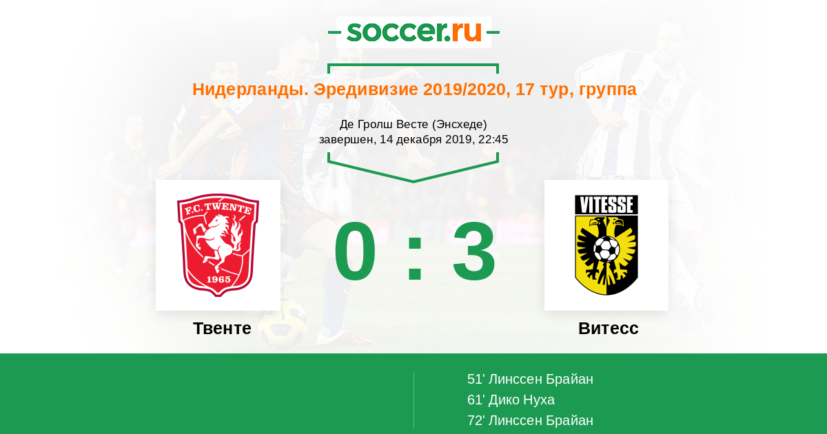 Протокол матча Твенте против Витесс