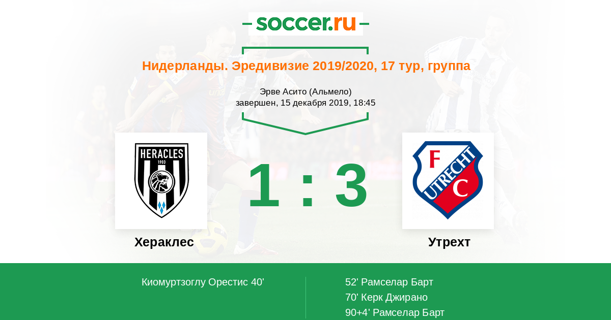 Протокол матча Хераклес против Утрехт