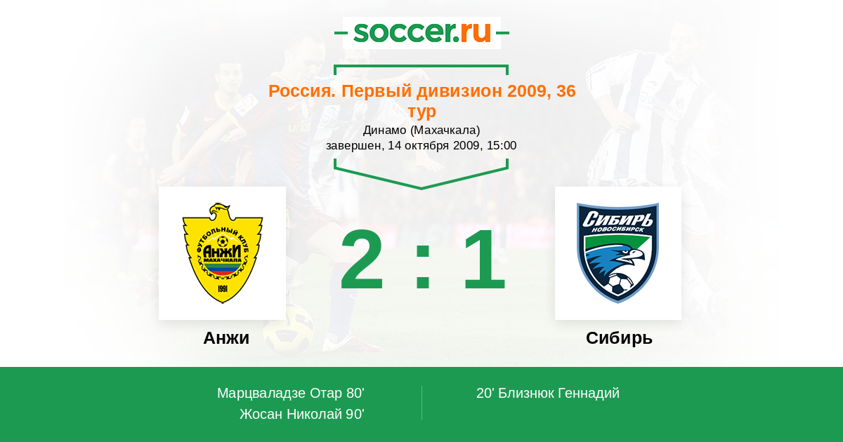 Протокол матча Анжи против Сибирь