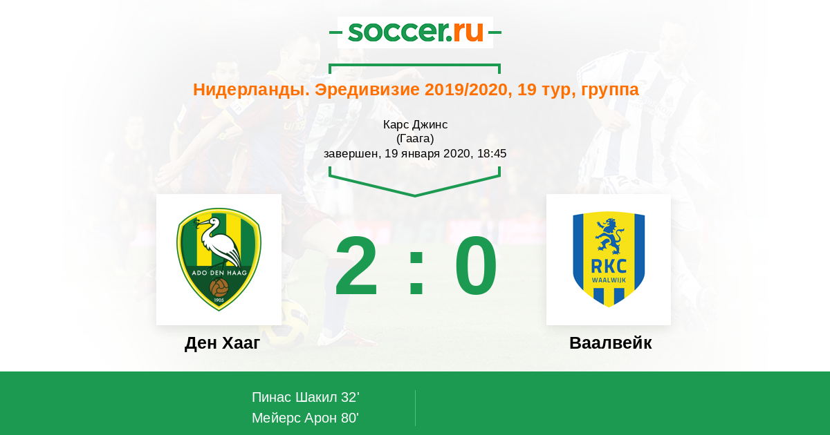 32' (1:0) Пинас Шакил (19) (Гуссенс Джон (11))
