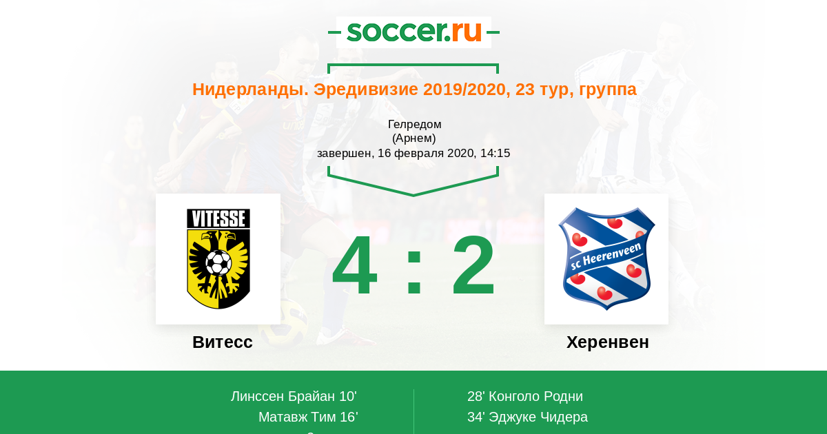 28' (2:1) Конголо Родни (21) (Веерман Джоуи (20))
