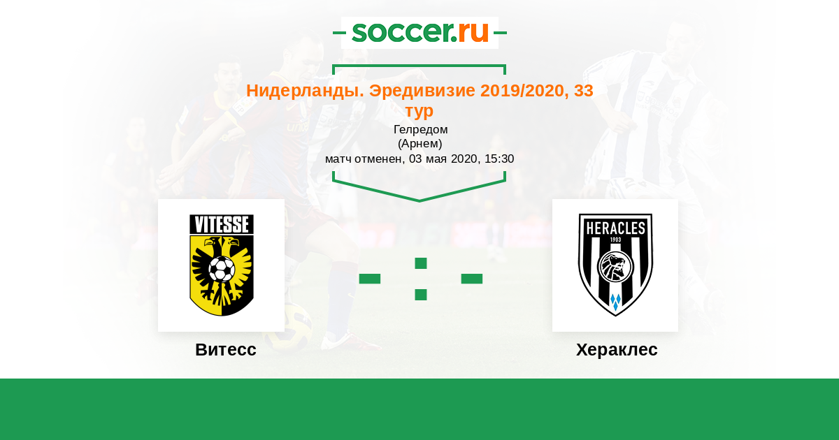Нидерланды. Эредивизи 16.03.2019 Хераклес Логотип футбольный клуб Хераклес (Алмело) 3:2 Логотип футбольный клуб Витесс (Арнем) Витесс