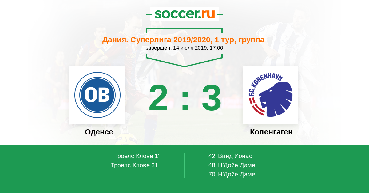 42' (2:1) Винд Йонас (23) (Н'Дойе Даме (14))
