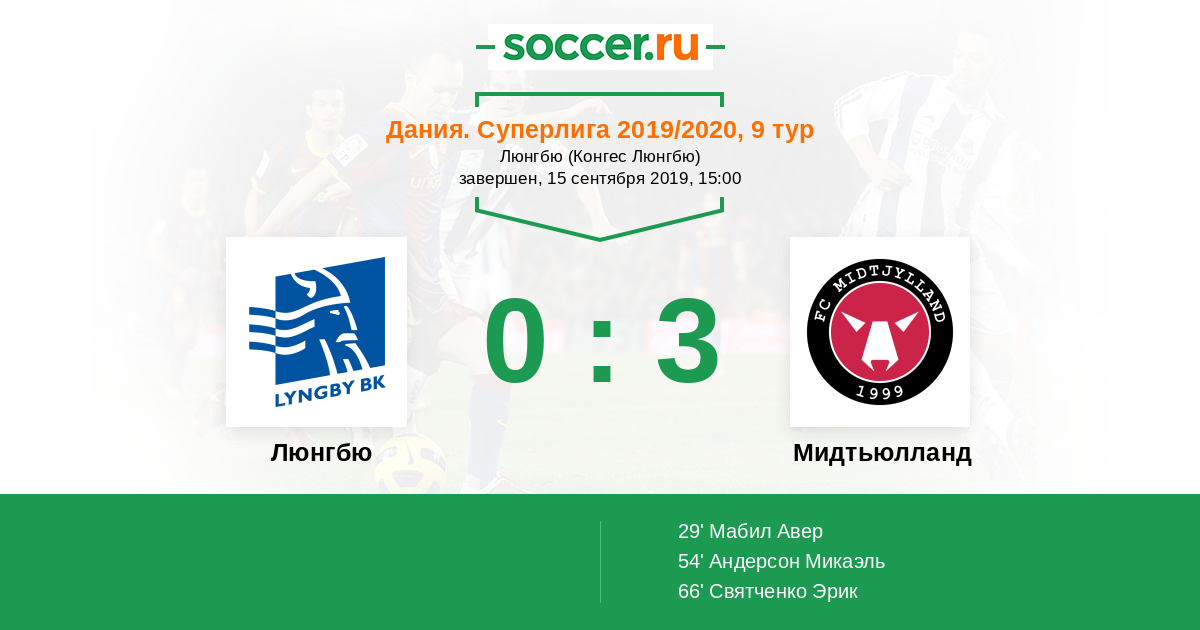 Протокол матча Люнгбю против Мидтьюлланд