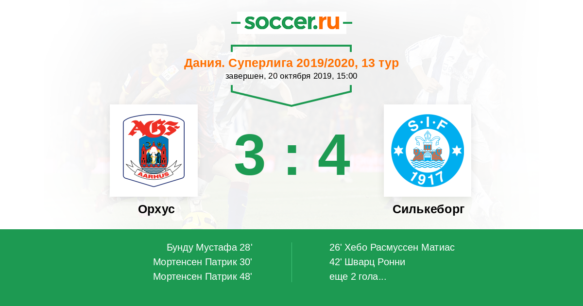 Протокол матча Орхус против Силькеборг