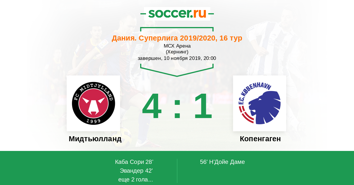 Протокол матча Мидтьюлланд против Копенгаген