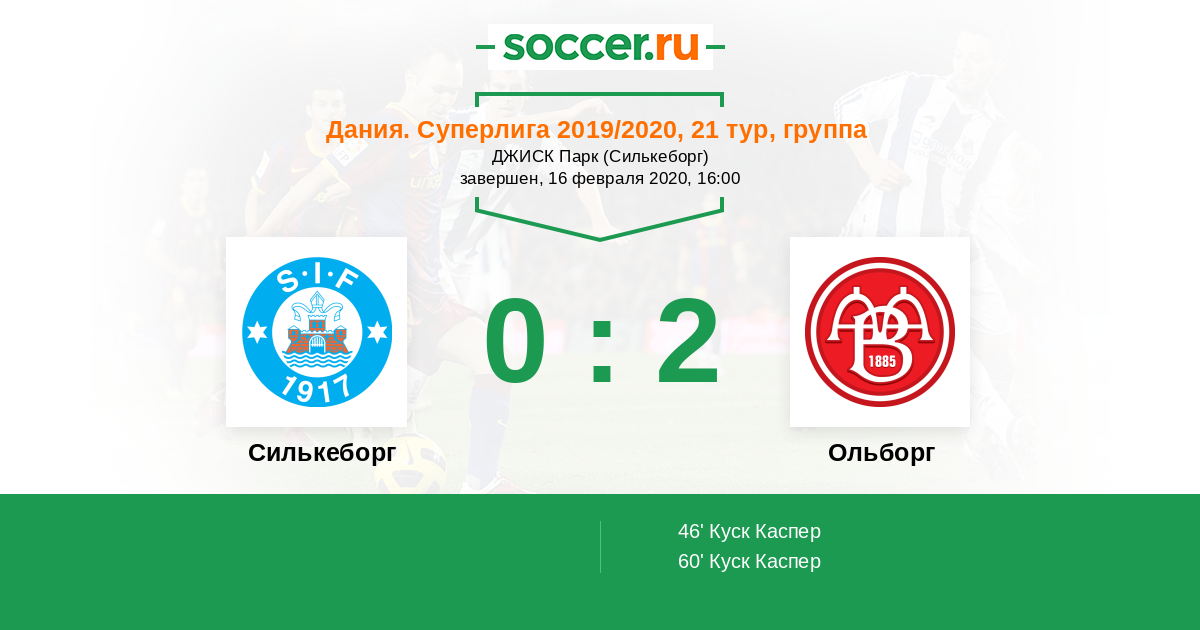46' (0:1) Куск Каспер (17) (Олсен Патрик (21))