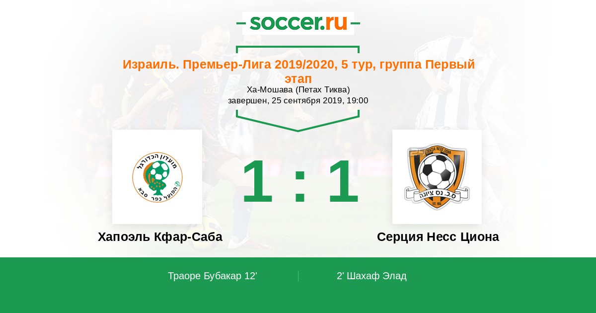 Протокол матча Хапоэль Кфар-Саба против Серция Несс Циона