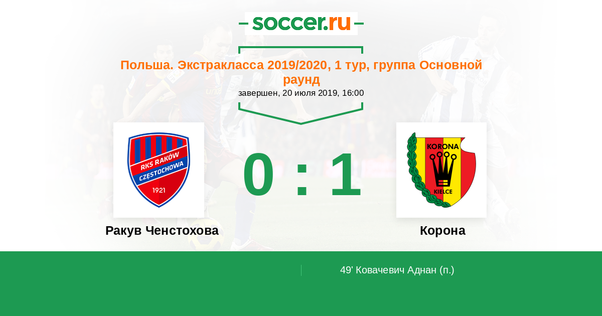 Протокол матча Ракув Ченстохова против Корона